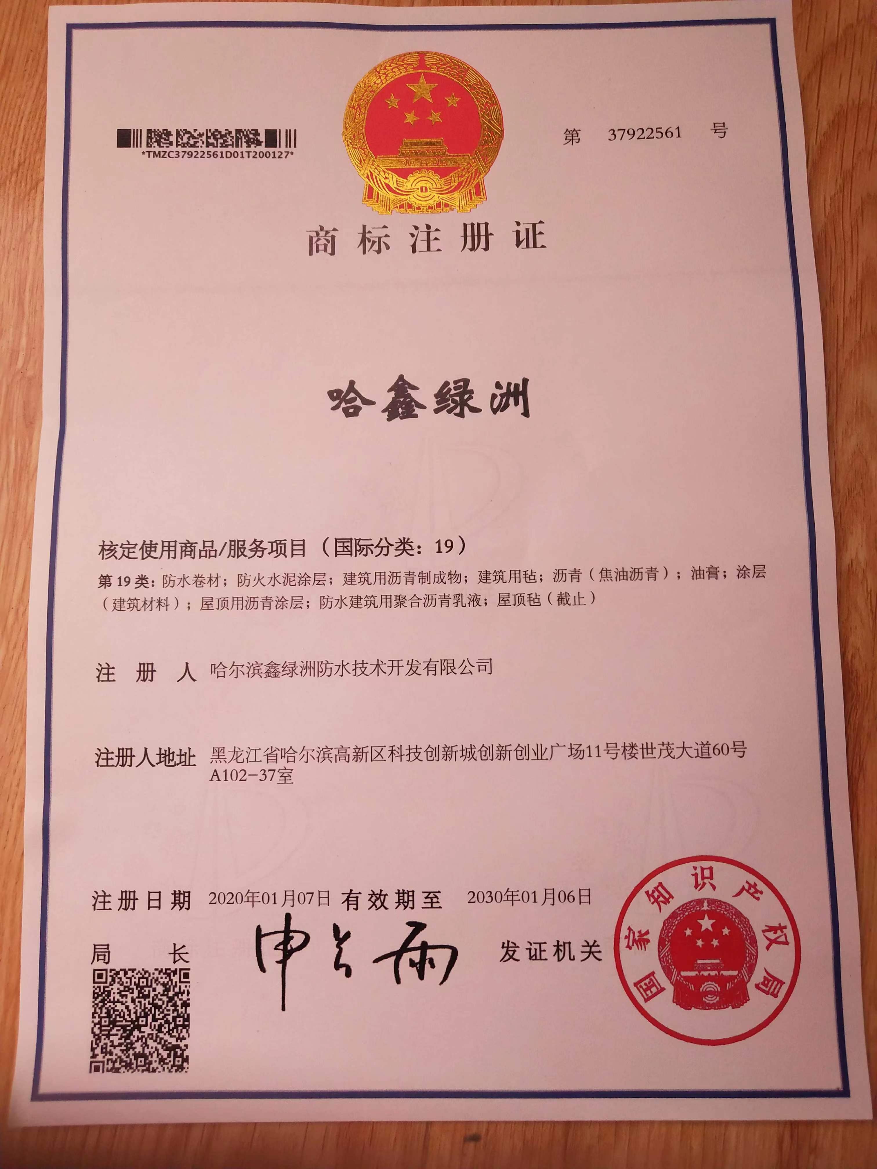 公 司:哈爾濱鑫綠洲防水有限公司