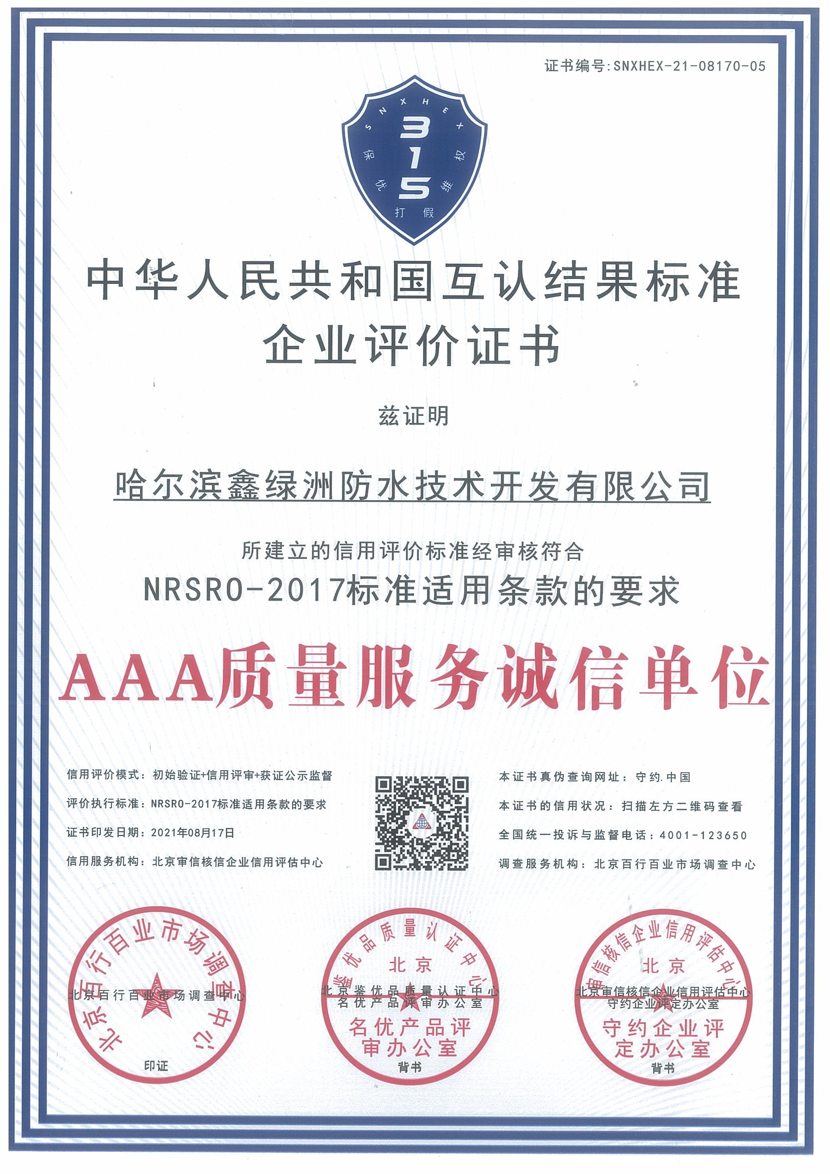 企業(yè)認(rèn)證證書
